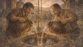 ひびのつぼから落ちる少しずつの水が、乾いた場所をやわらかくし、芽がしおれるのを防ぎました。立派なつぼは必要なところへしっかり水を届けました。二つのつぼは、それぞれ違う形で畑を助けたのです。