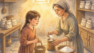 【今日のお話のポイント】・少ししかなくても、分けようとする心は人をあたためる・豊かさは、たくさん持つことだけでなく、どう使うかにもあらわれる・親切は大きさより、必要なときに差し出すことが大切むかしむかし、石の道が交わる小さな町に、よい香りで...