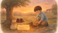 それでもアブラハムは意を決して、村へ向かいました。父が眠る家に、あの頃と変わらない畑が広がっていました。