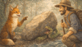 「キツネくん。君の『歌いたい気持ち』が私に棒の痛みをもたらしたように、私の『踊りたい背中』が君に冷たい水の怖さを教えたね。自分のことしか考えない習慣は、結局は自分に返ってくるものなんだよ」